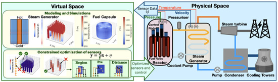 In NPPs, the implementation of optimally positioned sensors within distinct units such as steam generators, reactor fuel capsules, and other downstream components is paramount for enhancing the efficacy and safety of operations. The integration of these sensors is crucial for the effective functioning of a nuclear digital twin, which operates across its four pivotal spaces: physical space, digital/virtual space, data space, and recommendation and action space. This integrated approach not only facilitates robust monitoring and reactor control but also minimizes the need for human intervention, thereby elevating both safety and operational efficiency [13].