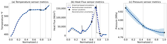 The secondary-side temperature, flux, and pressure can be accurately reconstructed with minimal reconstruction uncertainty using only 3 QR-constrained sensors. The sampling rate is .