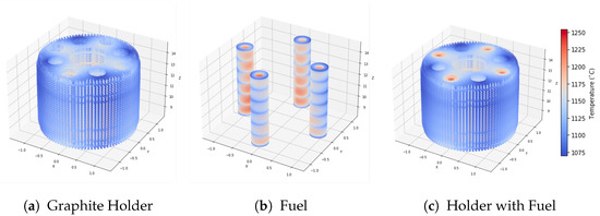 Certain locations in the TRISO fuel experiment can reach temperatures up to 1500 °C. To withstand these conditions, high-temperature irradiation-resistant thermocouples (HTIR-TCs) made from molybdenum/niobium thermoelements have been developed at Idaho National Laboratory (INL), as shown in Figure 4. Monitoring the temperature of TRISO fuel over extended periods of irradiation is challenging due to thermocouple drift. Therefore, it is crucial to optimize the placement of these sensors to minimize uncertainty and maximize accuracy.