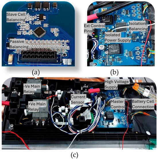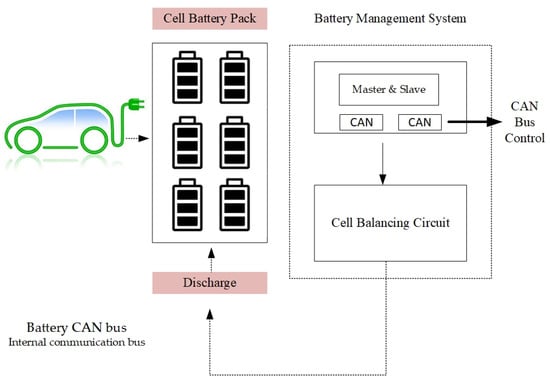To address these challenges, a direct cell-to-cell method using a DC–DC converter is proposed in [25,26]. A cost-effective balancing circuit is presented in [25] utilizing relays, while [26] achieves superior performance at a higher cost. In this research, a new cell-to-cell balancing circuit for lithium-ion battery groups is introduced to overcome the drawbacks of conventional cell-balancing methods. This proposed topology facilitates direct charge transfer from a high-voltage cell to a low-voltage cell through a DC–DC converter. The control of this method is straightforward to implement. By employing relays, which can be driven by a transistor array, as cell selection switches, the cost of the balancing circuit can be significantly reduced. Furthermore, the balancing speed can be enhanced by appropriately designing the voltage gain of the push–pull converter, ensuring that the balancing current remains substantial even as the voltage difference between the two cells diminishes. Section 2 introduces BMS requirements and features. In Section 3, the battery management testing structure includes the hardware and software. In Section 4, an overview of the portable electronic components used in the design is explained. In Section 5, the experimental setup and some measurements are provided. In Section 6, results to show the superiority of the proposed method are presented. In Section 7, the conclusion is given.