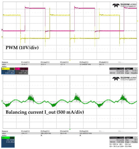 Waveform of DC–DC converter (PWM waveforms and cell balancing current).