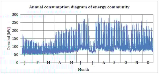 In addition, a total annual consumption diagram is given (Figure 3) to identify maximum and minimum loads. From Figure 3, it was found that the maximum load was 285 kW in August, while the minimum load was 39 kW in January.