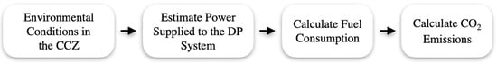 Figure 3 illustrates a general block diagram for the estimation of CO2 emissions while nodule loading in the CCZ. The calculation of CO2 emissions during the loading process is based on the fuel consumption of the transporting bulk carrier while it loads PMNs from the extraction ship as follows: