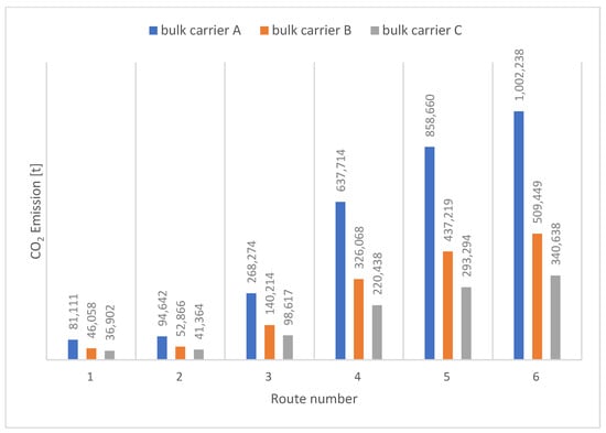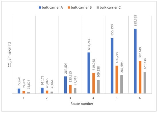 CO2—total CO2 emissions by bulk carrier fleets A/B/C,