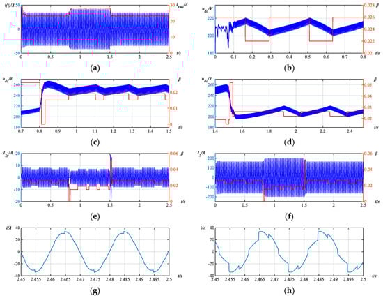 Figure 8f shows the total output current command value of the A-phase inverter. Due to the significant difference between the amplitude of