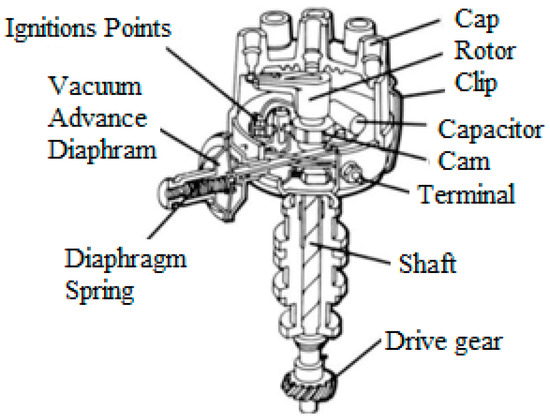 The conventional distributor ignition system, also known as the Kettering ignition, was named after its inventor Charles Kettering and has been in use for more than 100 years (Figure 1). The main function of a conventional ignition distributor is to connect the medium-voltage output of the ignition coil (one or more) to the right spark plug in the correct firing sequence (Figure 1). It is very popular in multicylinder engines in cars, trucks, boats and aircraft. Over time, contact breakers have been associated with mechanical type, inductive pulse generators, Hall generators or optical pulse generators [33].