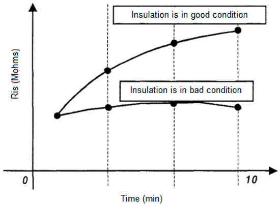 - a lower insulation resistance can have a higher and increasing polarization index and a higher dielectric absorption ratio, which indicates a better insulation quality (Figure 14a,b);