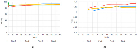 Medium-voltage distributor type D, after cleaning 1, Ut = 5 kV: (a) Ris; (b) Pi.