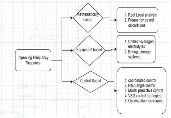 Furthermore Figure 4 shows a summarized model of strategies that can be used to improve frequency response of RES integrated networks. They are categorized into three, which are mathematically based, equipment-based, and control-based, as shown in Figure 7. Also, under each category the list of specific technique falling under each category for example under mathematically based there is root cause analysis and frequency-based calculations.