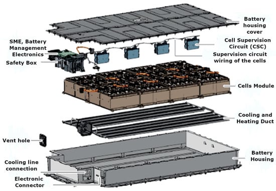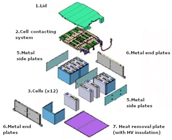 The different parts of the traction battery of the tested vehicle are shown in Figure 2.