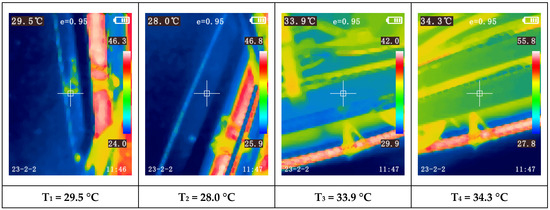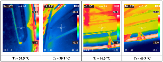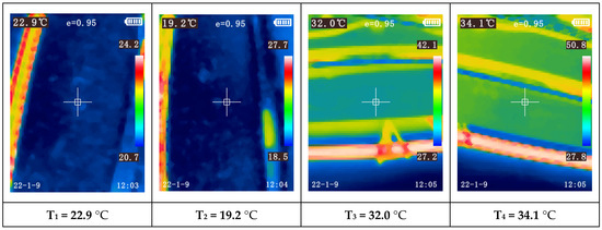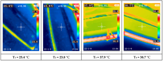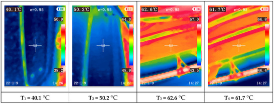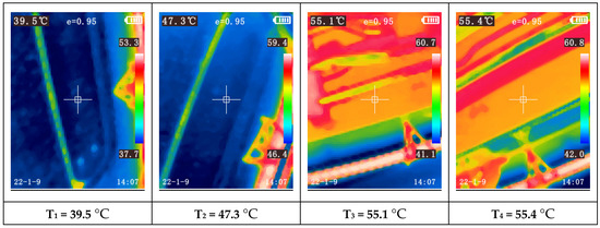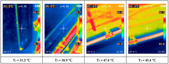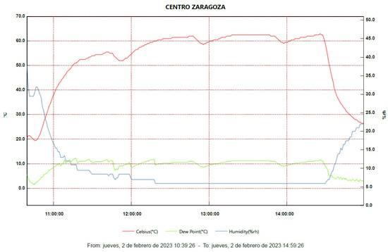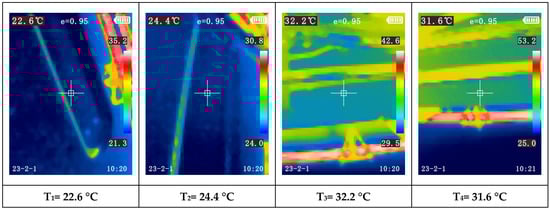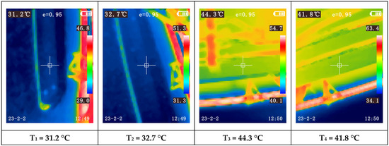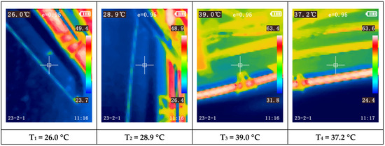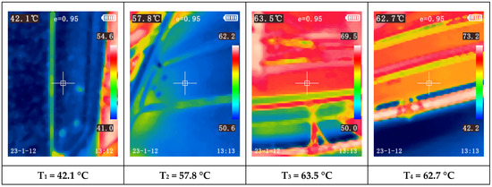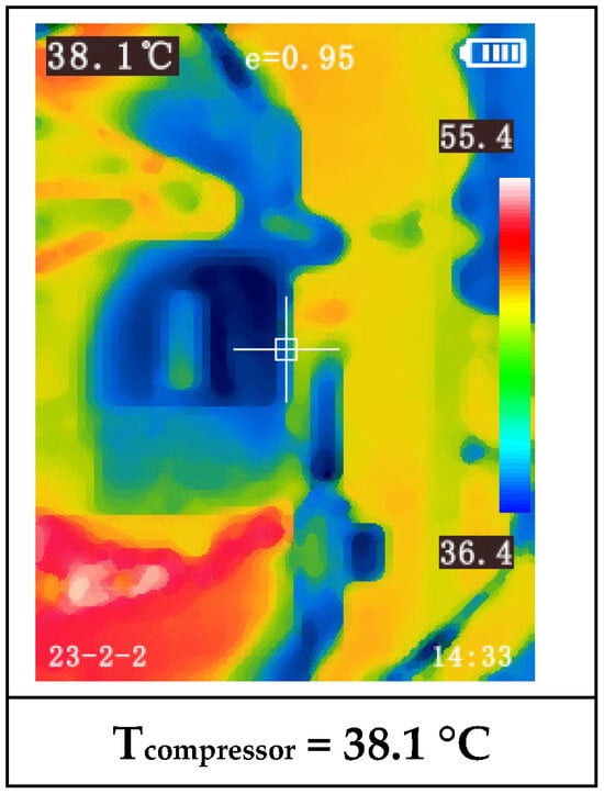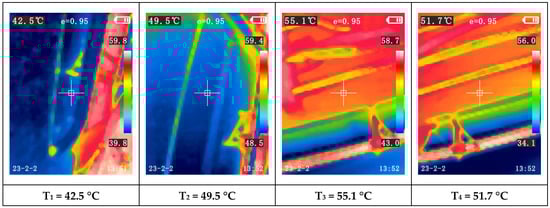 Another observation is the increasing temperature disparity among the modules as the paint booth temperature rises. For instance, during Test 1 (first 60 min), when the booth reached the programmed temperature based on ambient conditions, nearly all modules exhibited similar temperatures (between 17.7 °C and 19.2 °C). During this test, the compressor was only activated towards the end of the final test, Test 4, triggered by one of the modules reaching 32 °C (measured with the thermocouple).