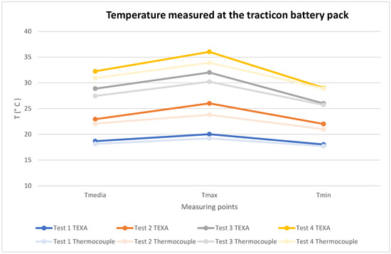 - The temperatures measured with the TEXA equipment are generally slightly higher than those measured with the thermocouples placed on the battery modules.