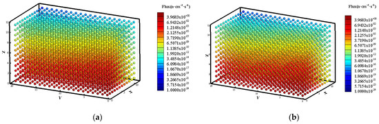 where m is the discrete direction number, and are the scattering and fixed source terms, respectively. For spatial variables, the finite difference method [32] or finite element method [33] is used. The discretization method transforms the original transport equation into a large set of equations that can be easily solved. After solving the neutron angular flux of each phase space, the neutron scalar flux and the flux moment in the phase space are calculated by the numerical integral approximation method, as shown: