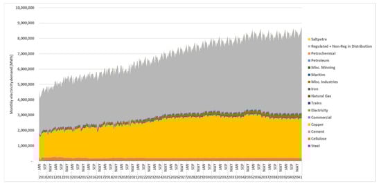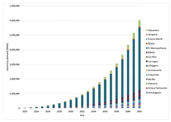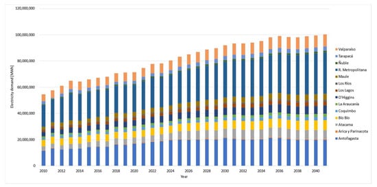 - Comisión Nacional de Energía. Informe Definitivo de Previsión de Demanda 2021–2041; Comisión Nacional de Energía: Santiago, Chile, 2022. [Google Scholar]