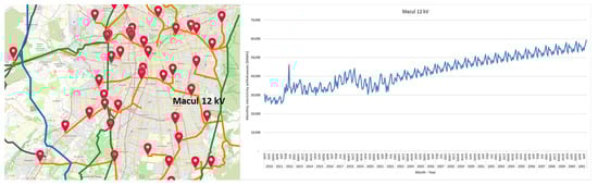 The Independent System Operator in Chile (known as Coordinador Eléctrico Nacional in Chile, hereinafter, the Coordinator) is the institution in charge of coordinating the operation of the National Electric System in a secure, economic and open-access way. Also, this institution has additional responsibilities inside the electrical sector. It is the system and market operator, participates in the power transmission planning, determines the available transmission capacity, monitors the capacity of the power system to meet the demand in the coming months, among other activities. Regarding transmission planning, every year, the Coordinator proposes new public work projects and the extension works that should be built in the future to the National Energy Commission (known as CNE in Chile). Then, the CNE takes this input and other inputs to determine the transmission expansion plan that will be developed in the coming years. In order to guarantee open access to new power plants, every year, the Coordinator determines the available transmission capacity of dedicated facilities. In all these tasks, the Coordinator uses different kinds of models to simulate the future operation of the power system, and it uses mathematical models to forecast the electric demand at the buses level. The electric demand projection is an input for these operation and planning models. In comparison to other energy and electric demand models where the projections are carried out at a national or regional level, here, more details are required to represent the electric demand and simulate the power flows of the network. Chile is divided into 16 regions and 346 districts. The power system model is represented by 636 buses distributed throughout these regions and districts. However, these buses do not represent the network after the primary substations in the distribution power systems. Figure 1 shows the geographical location of some of these buses in Chile.