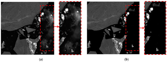 Comparison of images before and after interference areas removal: (a) with containing interference areas; (b) without containing interference areas.