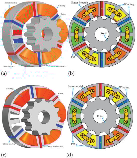 - Amirkhani, M.; Farahani, E.F.; Mirsalim, M. Study of An Improved Biased Flux Intermodular Permanent Magnet Motor. IEEE Trans. Transp. Electrif. 2023, 10, 4455–4469. [Google Scholar] [CrossRef]
