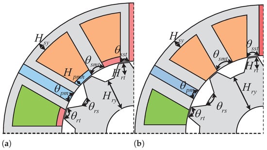 - Liao, Y.; Liang, F.; Lipo, T.A. A novel permanent magnet motor with doubly salient structure. IEEE Trans. Ind. Appl. 1995, 31, 1069–1078. [Google Scholar] [CrossRef]