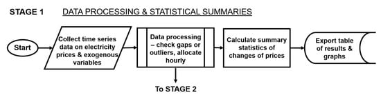 This figure depicts Stage 1 of the methodological approach consisting of data pre-processing and calculating summary statistics of hourly allocated forward and spot pricing.