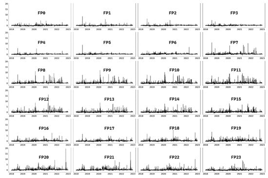 The final stage examined the relationship between electricity forward and spot prices, focusing on hourly time-varying forward premiums’ economic features and risk factors, estimating VARs using percentage forward premiums (FPit) as defined by Equation (4), where Fi,t−1 reflects the day-ahead forward price, and Sit reflects the day-of spot price for a daily interval, i, of a particular hour of day series.