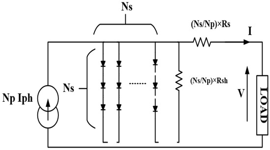 When PV arrays are constructed by connecting solar cells in both series and parallel configurations, a common assumption is that these cells share identical characteristics. Figure 3 shows the electrical equivalent circuit of a PV array.