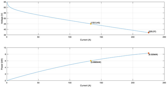 The general formula for the power (P) generated by a fuel cell is given as follows: