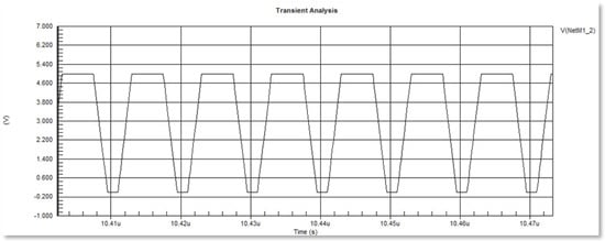 To achieve an optimal operation, the inverter structure necessitates soft switching, called ZVS, to minimize losses. Figure 25 illustrates the control signal of class-Φ2 for specific parameters, including a duty cycle (D) of 45%, a fall time of 0.002 us, a time delay of 0.001 us, and a rise time of 0.002 us.