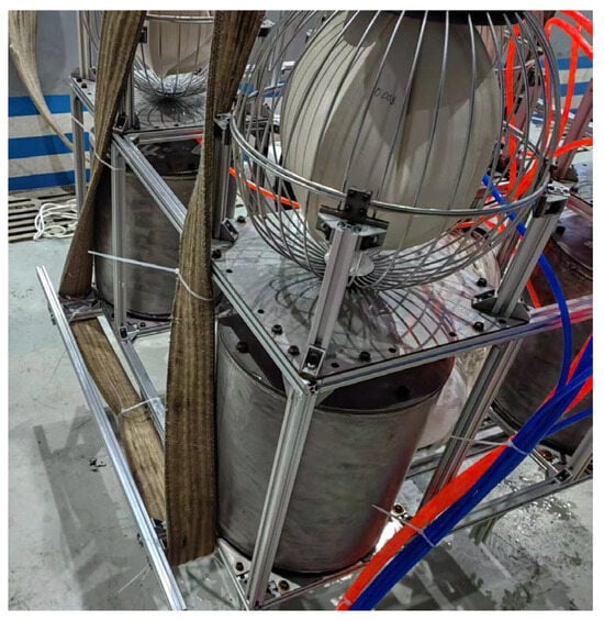 The steel frame connecting all parts of the device is made of H-shaped steel, the material of which is Q235. H-shaped steel has strong bending resistance in all directions [27], which is suitable for being the main stressed structural parts in complex Marine environments. There is a solenoid ball valve in the control valve box to control whether the airbag air path and the adjustable ballast air path are connected. When the device starts to vent, the airbag will become smaller and the buoyancy force of the device will be reduced. At this time, high-pressure gas will be injected into the adjustable ballast and seawater will be discharged, so that the gravity and buoyancy of the device will be balanced, so that the position of the device will not move very much during the process of venting. At the beginning of the gas storage, the air bag and the adjustable ballast gas path are connected first, and then the channel between the adjustable ballast and seawater is opened. The high-pressure gas inside the adjustable ballast will enter the air bag under the pressure of seawater. After the gas in the adjustable ballast is completely transferred to the air bag, if the gas volume in the air bag is not up to standard, the compressed air will be injected into the air bag separately. During this process, the total volume of the device remains constant, thereby ensuring that the resultant force acting on the device in the sea remains unchanged throughout both gas storage and discharge processes. This effectively reduces fatigue loss in the fixed cable.