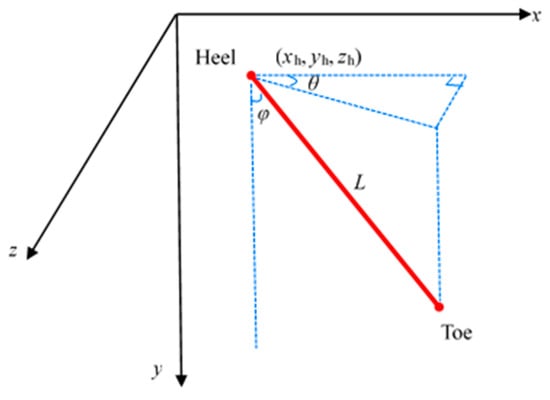The toe coordinates (xt, yt, zt) can be calculated based on the representative parameters of the well position: