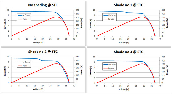 I-V characteristics for different cases of shading.