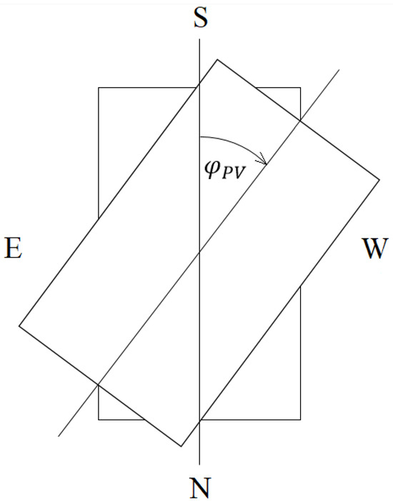 The azimuth and elevation relative to the PV plane can be calculated as shown in Equation (9):