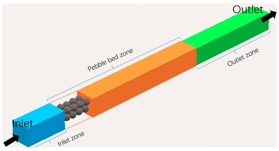 Figure 2 depicts the three-dimensional view of a pebble bed region. The pebbles are arranged in a random manner. During the operation, the helium purge gas is forced into the blanket by the pump of the TES, and it passes the outside pebble bed region first. Subsequently, the purge gas flows into the inside pebble bed region, and after that, it goes outward toward the blanket. During the operation of the TES, the pressure at the outlet of the blanket is 0.3 MPa, and the flow rate of the TES purge gas is 0.125 g/s.
