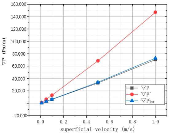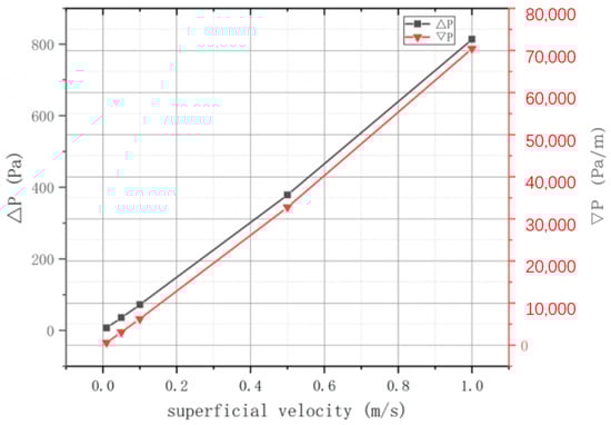 With the establishment of model A, the pressure drop () against superficial velocity is calculated to acquire its pressure drop gradient against superficial velocities;