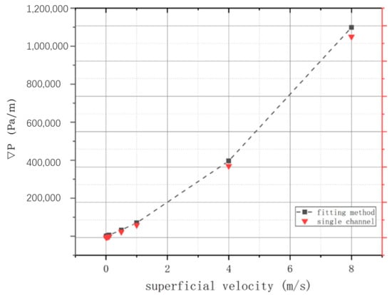 The result obtained in the previous step is employed for the determination of parameters for porous media with the application of two methods (correction method and fitting method), after which the adjusted parameters are taken into model B to calculate the new pressure drop gradient. The applicability of the methods is evaluated by comparing the results in model A and model B. It should be noted that the result in model A has been verified in accordance with the experimental data by scholars at the Southwestern Institute of Physics (SWIP) [