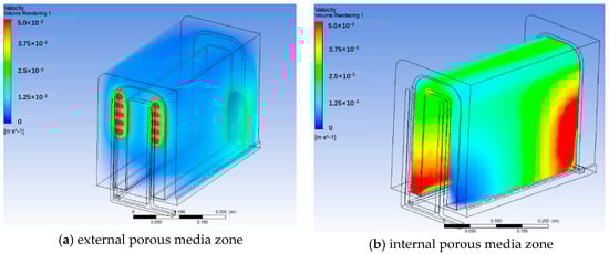 Table 2. Apparently, the occupations for low velocities are dominant, while the region with a velocity above 1 m/s is negligible. Based on the result, the inlet velocity of the single-channel model is considered to be within the range of 0.01 m/s to 1 m/s.