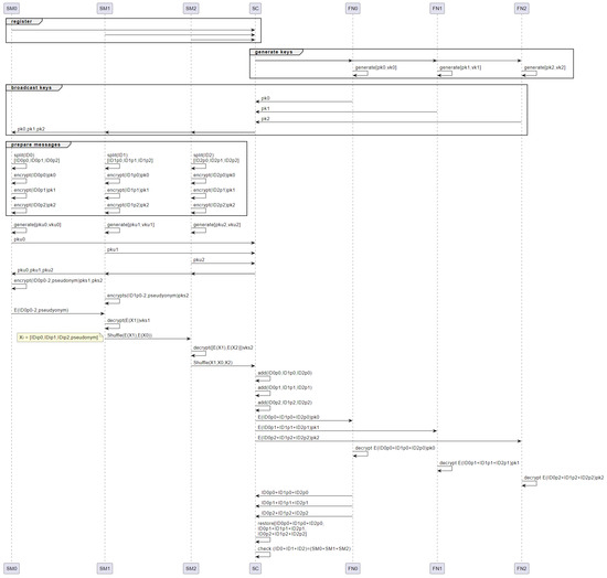First, anonymity is achieved using an existing cryptographic protocol known as coin mixing [31]. This process enables a batch of users on a blockchain to transfer their funds into new accounts that are not associated in any way with their original accounts. The process, which will be described in greater detail in the following sections, is impenetrable even to the batch of users involved in the mix. In the context of a TEM, batches of market participants associated with particular smart meters can transfer their funds (in whatever form they may appear) into anonymous accounts that can trade on the market with no association—digital or physical—to the original identity, account, or meter.