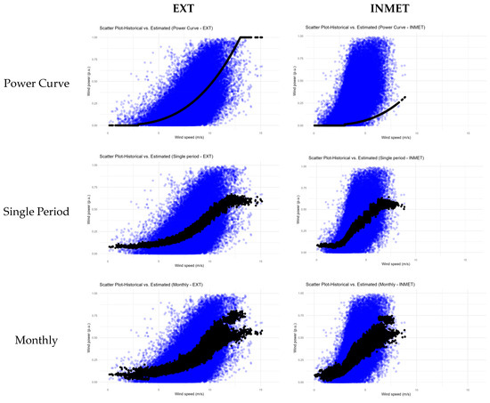 The results achieved with the traditional cubic power curve approach were used to develop the steps of the proposed method, which was tested in four approaches: single-period, monthly, hourly, and monthly–hourly.