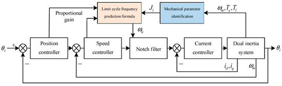 Inspired by the above literature, this paper will investigate the nonlinear characteristic suppression or compensation strategies. Based on the state-feedback method, the describing function method is improved to modify and optimize the gap compensation strategy. The incremental torque and speed difference integrals are used to identify the gap amplitude, and a gap deadband model with initial values is established. On the basis of the full closed-loop control structure, the oscillation mechanism of the limit loop is analyzed using the de-description function, and the oscillation frequency of the limit loop is preset: a state-feedback method based on the pole configuration is proposed to suppress the mechanical resonance, and the design of the feedback parameters is completed. Finally, the effectiveness of the gap amplitude identification algorithm and compensation algorithm is verified by simulation and experiment. The gap compensation strategy proposed in this paper is expected to effectively suppress the limit ring oscillation, attenuate the system shock, and improve the robustness.