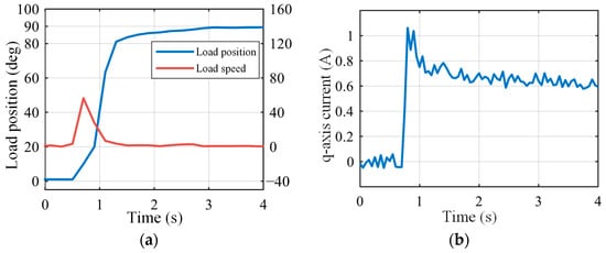 System dynamic response under 20% rated load with state feedback: (a) Load position and speed; (b) q-axis current.