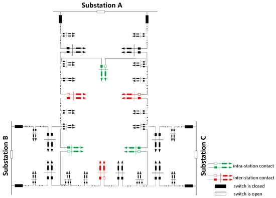 According to the number of substations, the snow-shaped distribution network can be categorized into three-station mode and four-station mode. Taking the three-station mode as an example, as shown in Figure 1, on the basis of the existing three groups of the single-ring network, three new intra-station tie switches are added to form a snow-shaped distribution network feeder group.