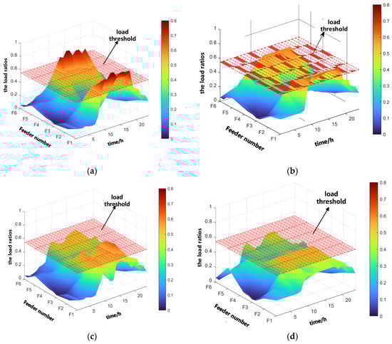 So far, many studies have carried out research on how to deal with coordinated modern optimization and energy management in distribution networks. A traditional distribution network is a single radial network, and its operation optimization is relatively easy. The scheduling object is relatively single, limited to a limited number of power supplies, substations, distribution equipment, and switches, and the regulating measures are mainly for network reconfiguration and reactive power voltage optimization control [2,3,4,5]. With access to various flexible resources, the operation and scheduling of modern urban active distribution grids (active distribution grids, integrated energy systems) need to face more complex and diverse scheduling objects [6,7]. Flexible regulation of ESSs and FL can improve power consumption behavior, achieve peak shaving and valley filling, and alleviate load imbalance problems [8,9,10,11,12]. A useful approach for site selection of shared energy storage is proposed for improving the utilization rate and profitability of ESSs [13]. The coordinated charging practices of EVs, as flexible loads, can be used to handle fluctuating renewable energy outputs and achieve optimal voltage stability and significant cost savings [14]. With dynamic reconfiguration [15,16,17], load balancing is achieved by changing the topology to transfer the load from highly loaded feeders to less loaded feeders. Based on an improved binary particle swarm optimization algorithm, a reconfiguration method for distribution networks with the objective of load balancing is proposed [18]. A multi-objective dynamic reconfiguration optimization model suitable for multi-level switching modes is formulated to minimize operation costs, load imbalances, and PV curtailment [19]. To solve this optimization problem more quickly and accurately, scholars have put forward a variety of solving algorithms, including mathematical optimization methods [20,21] and heuristic algorithms [22]. The linear programming method can simplify the constraints of the model and has the advantages of fast calculation speed and good convergence. The convex relaxation technique represented by second-order cone programming (SOCP) is used more and more frequently, as it can obtain the globally optimal solution and reduce the computation time. Previous studies have investigated the above measures accordingly, but most of them focused on the traditional distribution network represented by one feeder (e.g., IEEE33) or an ADN with control of distributed energy resources. With the extensive integration of distributed resources (DRs) into distribution networks, the optimization problem of distribution networks needs the joint operation optimization of multiple coordinated feeders and stations rather than the operation optimization of a single feeder.