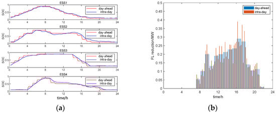- In the intra-day phase, the optimal interval is 15 min, and the rolling optimization correction is carried out to minimize operational costs and power adjustment penalty costs, improving the accuracy of scheduling and finely regulating and controlling the output of ESSs and FL.
