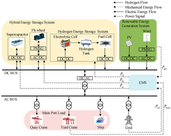 A typical green port multi-energy microgrid system and the power signal of the EMS is depicted in Figure 1.