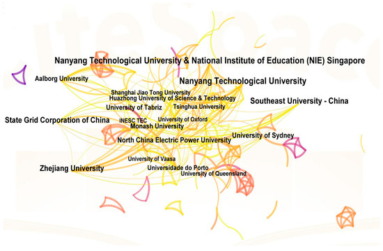 Further analyzing the publication volume of research institutions, Table 4 lists the top ten research institutions in this field and their corresponding number of published papers. Institutions such as Nanyang Technological University, the National Institute of Education Singapore, and Southeast University have made significant contributions within this field, and their nodes are relatively large. Also ranking highly are Zhejiang University, the State Grid Corporation of China, the University of Sydney, and others, which also have comparatively high publication volumes. It is particularly worth mentioning that there are obviously more research institutions from China in this field, and these institutions are often the main research forces within the domain.