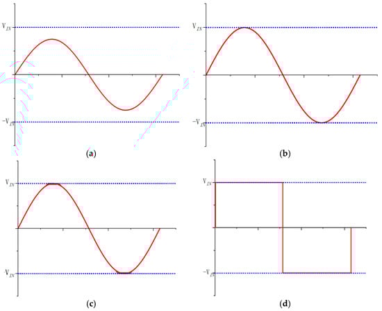 From Figure 4, it can be seen that the voltage VP is chopped in the external DC voltage source VIN through a full-bridge inverter composed of four MOS tubes. VIN is modulated by four MOS transistors. The inverter circuit is a bipolar square wave which can be obtained by Fourier decomposition