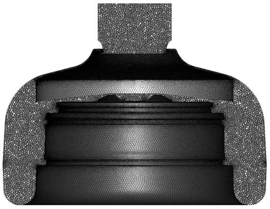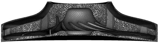 For the discretization of the fluid domain, a polyhedral mesh has been generated with Fluent Meshing, which ensures computational accuracy while reducing computational complexity. To capture the flow structure in the gap, mesh refinement was applied to the key regions that affect calculation accuracy, and a boundary layer was applied to the impeller wall to ensure that the value of y+ on the surface of the impeller is mostly below 100 and the wall y+ is less than 5 for all blade surfaces [33]. Therefore, these meshes are reliable for simulations applying the SST k-ω model near the wall boundary.