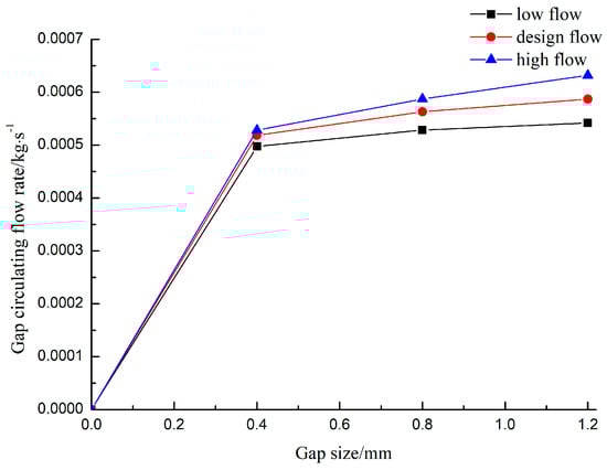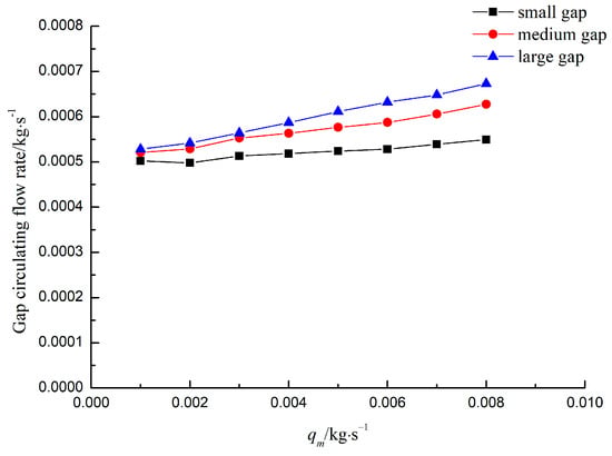 Circulating flow rate against gap sizes under different inlet flow conditions.