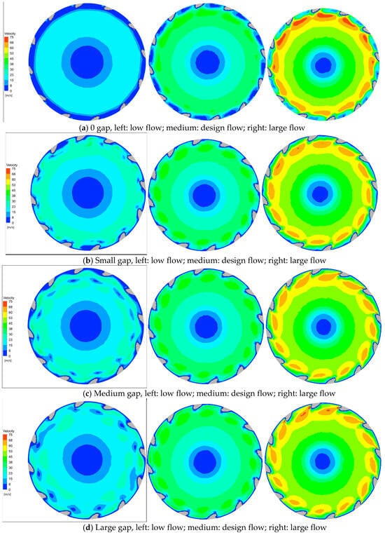 Velocity distribution of the inlet section of the impeller with different gap sizes.