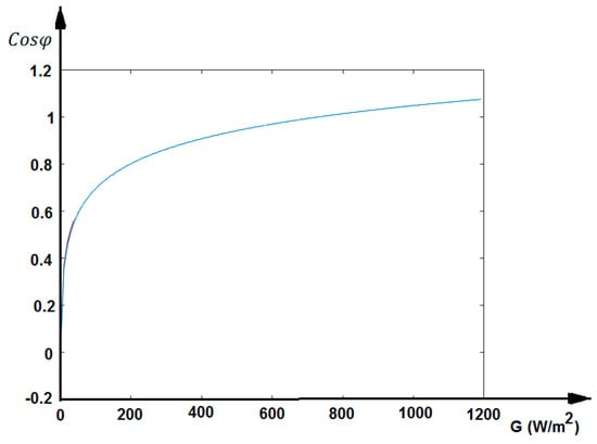 This approach demonstrates how to apply curve fitting with a combination of known mathematical functions to analyze the relationship between solar irradiance and power factor in a grid-connected solar PV system. Adjust the model complexity and parameters based on your specific data and requirements to derive meaningful insights. Findings of C1, C2 and C3 are shown in Appendix A. When we write Equation (3) depending on the power factor and solar irradiation, the following expression is obtained.
