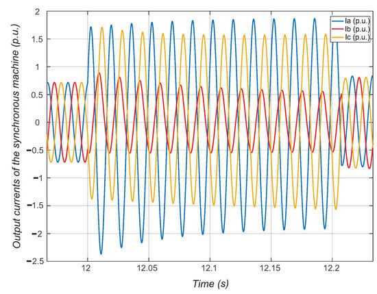 In Figure 4, the three-phase output currents of the synchronous machine using the harmonic sequence component model are shown.
